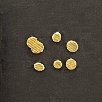 土肥金山の砂金は、ほぼ円形で、よく見ると線が入っている。砂金は人工的に加工しているのかな?