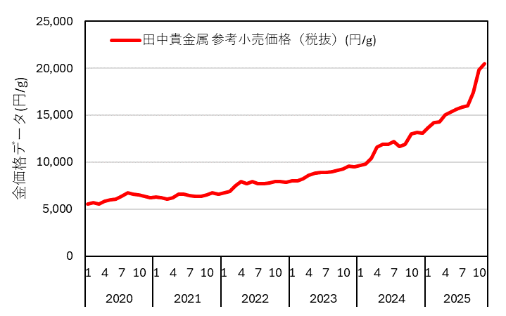 • 2025年11月の月平均価格は20,454円(税抜)/g